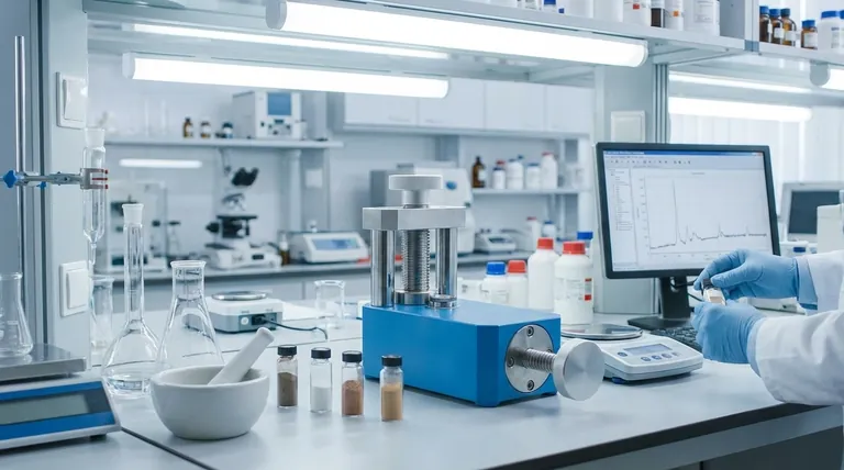 This is a standard procedure for techniques like FTIR (Fourier Transform Infrared Spectroscopy), where a sample is mixed with potassium bromide (KBr) and pressed into a transparent pellet, and for XRF (X-ray Fluorescence) analysis.