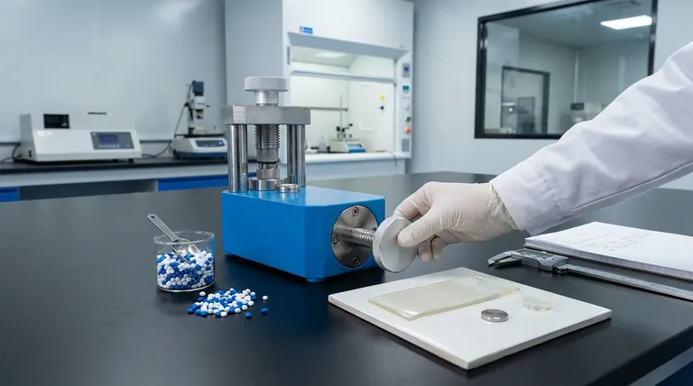 A press consolidates this raw material into a solid, homogenous shape with uniform density. This process ensures the final specimen is free of voids and internal stresses that would compromise test results.