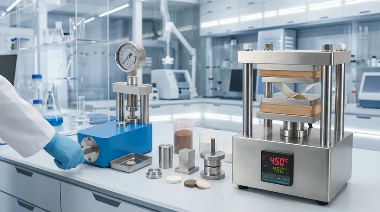 - If your primary focus is creating polymer films or dense ceramics: A heated lab press is required to apply the necessary thermal energy and pressure.